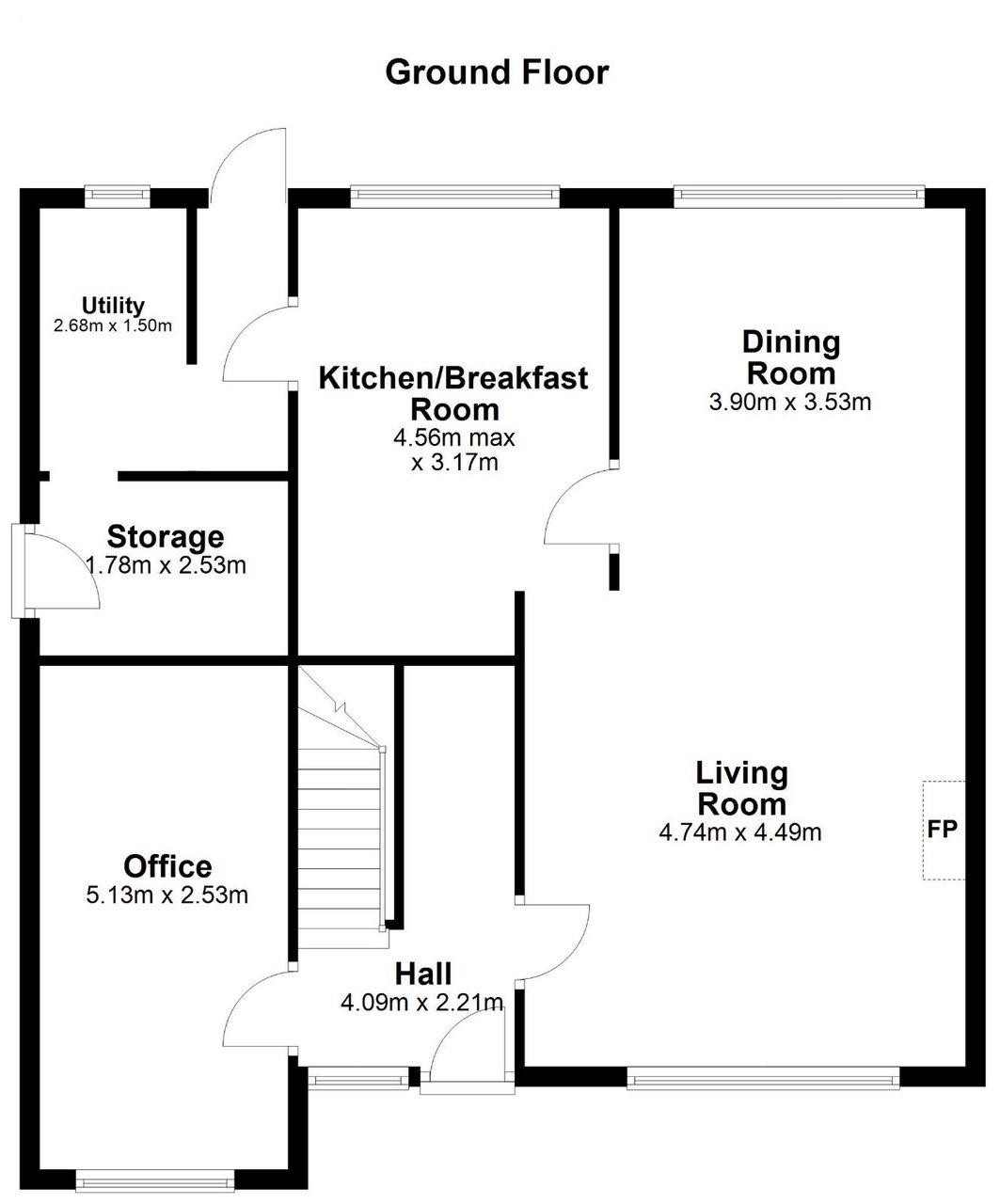 Office: c. 5.13m x 2.53m