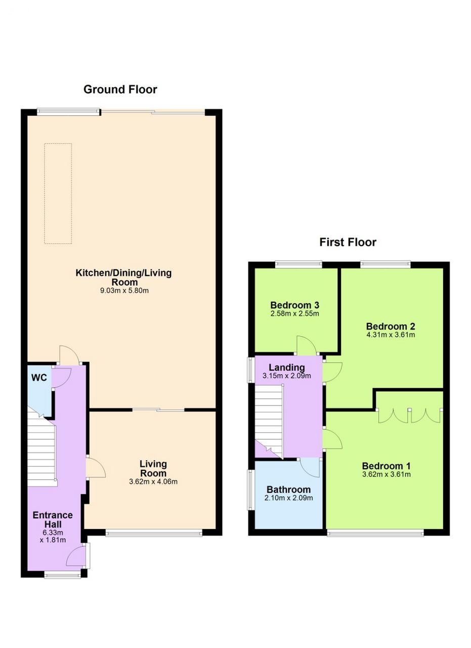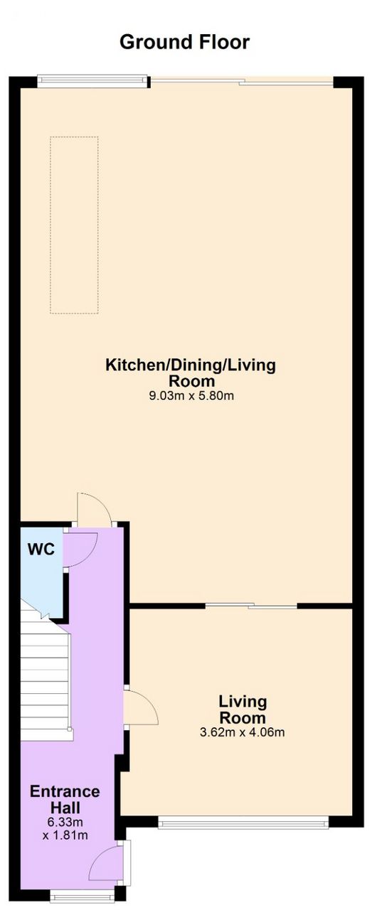 Kitchen/dining/living room: c. 9.03m x 5.80m