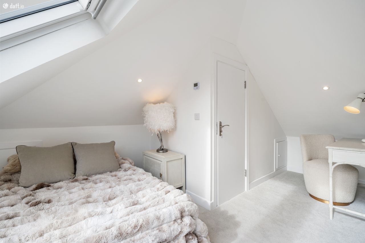Upstairs, there are three spacious bedrooms and a contemporary family bathroom, all finished to a high standard. A cleverly designed attic conversion further enhances the accommodation, providing a versatile additional room with ensuite and attractive views over the rear garden. This space is ideally suited as a principal bedroom, guest suite, or another private home office.